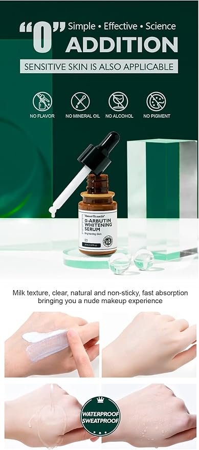 Serum: Mari Alpha-Arbutin marka maqaarkaagu yahay mid qalalan ama yar qoyan, ka dib marka cleanser / toner (haddii aad isticmaasho)→ qadarka yar (few drops) wajiga oo dhan ama meelaha dhibcaha madow u baahan.